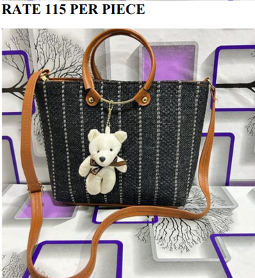 Black with white vertical stripe With Woven Straw Cute deddy Handmade Handbag for Womens//கறுப்பு மற்றும் வெள்ளை செங்குத்து கோடுகளுடன், பின்னப்பட்ட வைக்கோலால் செய்யப்பட்ட, அழகான டெட்டி பியர் பொம்மை இணைக்கப்பட்ட, பெண்களுக்கான கைப்பை