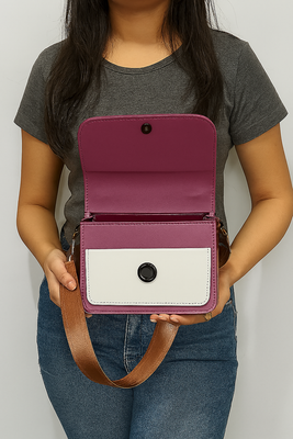 A modern sling bag with a two-tone design work Handmade Handbag for Womens//பெண்களுக்கான நவீன, இரண்டு வண்ண வடிவமைப்பைக் கொண்ட கைவினை ஸ்லிங் பை.