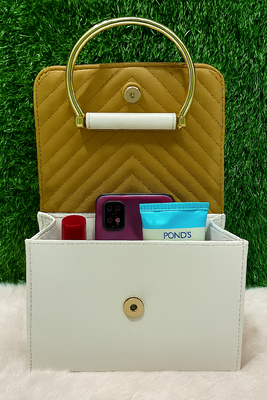 A single, large, gold-toned metal top Handbag for Ladies in Handmade//கைகளால் செய்யப்பட்ட, பெரிய, தங்க நிற உலோக கைப்பிடி கொண்ட, பெண்களுக்கான கைப்பை.