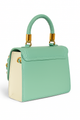 Color: The bag is primarily a light mint green color with a cream or off-white side panel.